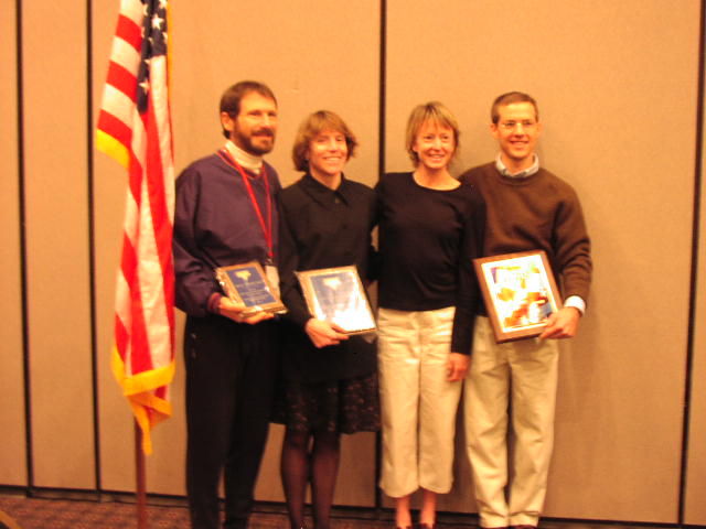 At the recently concluded USA Track & Field Annual Convention in Kansas City, the Mountain/Ultra/Trail-Running Council (MUT) announced a new slate of national championships and award winners. Chad Rickefs and Ann Heaslett received the Ted Corbitt and Ruth Anderson awards, respectively, as the outstanding U.S. ultrarunners of 2002. Roy Pirrung and Ann Trason were named U.S. masters (age 40+) ultrarunners of the year (for photo, click here. Also, four events were designated as USA National Ultra Championships for 2003. In chronological order, they are: White River 50 Mile Trail (early August); Headlands 50km Trail (late August); Olander Park 100 Mile Road (mid-September); and San Diego 1-Day 24-Hour Track (mid-November). Click here for more details on these championships, as well as information on sub-ultra Mountain and Trail USA National Championships for 2002.